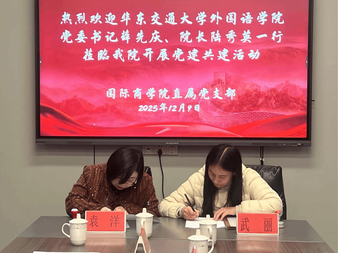 蒋诗文在欢迎辞中回顾了学校近年来在坚持党建引领、产教融合、协同育人等方面积累的宝贵经验,指出党建共建是双方立足新起点、开启新征程的战略选择。他强调,党建共建不是简单的“握手”,而是思想的交融、资源的共振、使命的共担。通过此次共建,两校党支部将携手并进,在党建引领下,推动外语教育与经贸人才培养的深度融合,书写校际合作新篇章。